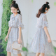 2017夏季新款韩版小清新碎花雪纺连衣裙收腰系带喇叭袖中长裙女