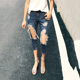 2017夏装新款大破洞牛仔裤女夏七分裤宽松显瘦直筒裤休闲乞丐裤潮