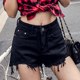 2017短裤女夏牛仔显瘦高腰百搭宽松学生破洞阔腿黑色a字毛边热裤