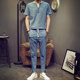 2件装~~夏季男士短袖T恤韩版社会小伙精神V领衣服修身2017潮半袖