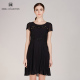 斯尔丽瑟俪春夏新款女修身OL高腰圆领短袖立体绣花素色雪纺连衣裙