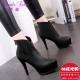 紫郁秋冬季新品欧美牛皮短靴防水台马丁靴女鞋高跟鞋细跟靴子女靴