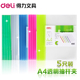 得力5539抽杆夹试卷夹插单页文件夹A4彩色透明拉杆报告夹5只装