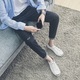 九分裤男士破洞9分裤子男小脚牛仔裤男学生韩版修身哈伦裤青少年