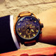 潮男手表男学生韩版简约潮流时尚大表盘时装表皮带男款防水石英表