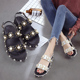厚底松糕凉鞋女夏2017新款百搭珍珠学生平底坡跟一字带罗马凉鞋女