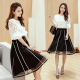 2017春季新款韩版七分袖蕾丝两件套半身裙小香风印花连衣裙套装裙