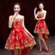 新娘敬酒服红色前短后长2016新款抹胸短款孕妇婚礼结婚晚礼服春夏