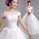 蕾丝钉珠花朵一字肩齐地婚纱礼服2017春季新款2560