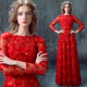 红色花瓣新娘结婚敬酒服晚宴年会演出主持人透视长袖婚纱礼服388
