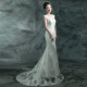 深灰色羽毛抹胸前短后长拖尾婚纱敬酒服新娘晚宴年会礼服9702