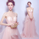 粉色蕾丝花瓣新娘婚纱礼服敬酒服晚宴年会婚礼演出长款礼服2561