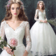 韩式新娘蕾丝一字肩长袖公主婚纱礼服2017新款2211