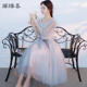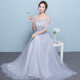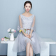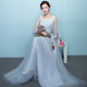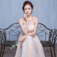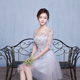 中长款伴娘服姐妹团小晚礼服年会主持人裙装2017新款伴娘团烟灰色