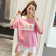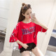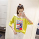 夏装新款韩版宽松BF原宿风短袖T恤女学生印花体恤假两件露肩上衣