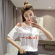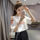 夏装新款韩版宽松刺绣短袖T恤女学生半袖体恤百搭打底衫露肩上衣