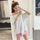 夏装新款韩版破洞短袖连帽卫衣时尚两件套学生休闲短裤运动套装女