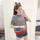 夏装新款韩版宽松短袖t恤女学生半袖条纹打底针织衫百搭体恤上衣