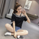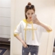 夏装新款韩版中长款短袖T恤女学生印花半袖体恤假两件露肩上衣潮