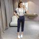 2017夏装新款韩版短袖T恤时尚套装九分背带裤休闲两件套气质女装