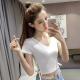 夏装新款韩版修身V领短袖T恤女白色半袖体恤性感短款打底衫上衣潮