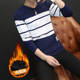 冬季男士毛衣加绒加厚冬天针织毛衫青少年保暖外套条纹男套头线衫