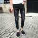 gthomme春夏款男士牛仔裤韩版修身青年蓝黑色刮烂潮男小脚长裤子
