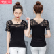 两面穿领方领蕾丝女短袖T恤春夏百搭修身外穿薄款打底紧身上衣