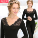 低领V领蕾丝女长袖春秋性感保暖上衣薄款秋衣打底衫T恤可外穿内衣