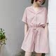 哈果自制 温婉气质连体裤 V领排扣连身裤女绑带短袖韩版连体裤