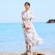 宿本小清新文艺碎花雪纺吊带连衣裙夏 一字肩收腰中长款荷叶裙女