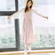 宿本夏装新款文艺两件套装雪纺吊带连衣裙中长款鱼尾裙 短袖白T恤