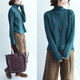 [清濯] 百搭高领简洁小开叉长袖毛衣打底- 湖蓝