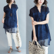 【清濯】缎面刺绣拼接 文艺知性丝麻翻领深蓝色衬衫-