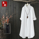 西缺原创 文艺范数字刺绣衬衣 宽松多袋纯棉白衬衫女中长款衬衫裙