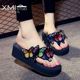 韩版新款手工拖鞋蝴蝶凉拖鞋女夏坡跟防滑休闲沙滩鞋厚底人字拖鞋