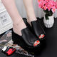 夏季新款花朵凉拖鞋女士厚底防滑坡跟鱼嘴拖鞋女夏时尚中跟凉拖鞋