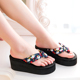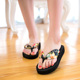 海边度假防滑凉拖鞋女夏夹脚休闲松糕底人字拖鞋厚底坡跟女沙滩鞋