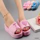 花朵格夏季韩版一字拖休闲凉拖鞋厚底女鞋松糕鞋沙滩拖坡跟高跟拖