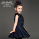 小魔星欧美童装女童真丝连衣裙2017新款无袖连衣裙儿童公主百褶裙