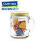 GlassLock韩国进口正品 家用办公室小熊玻璃水杯随手杯带盖500ml
