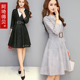 阿琦得贝韩版百搭修身纯色圆领套头长袖中款2017春季A字连衣裙女