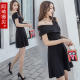 阿琦得贝2017春新款黑色大码显瘦连衣裙女七分袖V领赫本风小黑裙