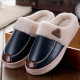 PU皮冬季防水棉拖鞋男士女款情侣室内家居厚底防滑地板保暖毛居家