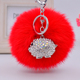 时尚皇冠汽车钥匙挂件大狐狸兔毛球毛绒水钻钥匙扣钥匙链