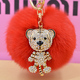 进口时尚汽车钥匙扣獭兔毛球钥匙链皮绳卡通暴力熊毛绒球包包挂件
