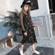 大码女装春波点蕾丝喇叭袖性感连衣裙印花中长款吊带裙肉卷大码
