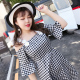 肉卷大码夏季新款小香风一字领漏肩收腰吊带格子连衣裙显瘦A字裙