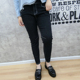 K-大码女装车线边修身直筒小脚裤肉卷大码-6872白线边黑蓝裤