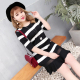 肉卷大码气质蕾丝拼接圆领韩版宽松显瘦中长款黑白条纹长袖连衣裙